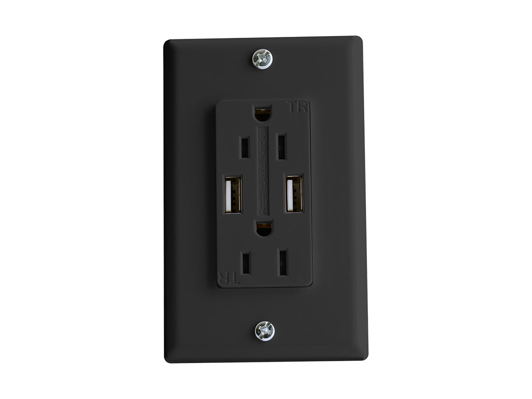 AC Dual Outlet Black with Cover-Plate & 2 USB Charging Ports