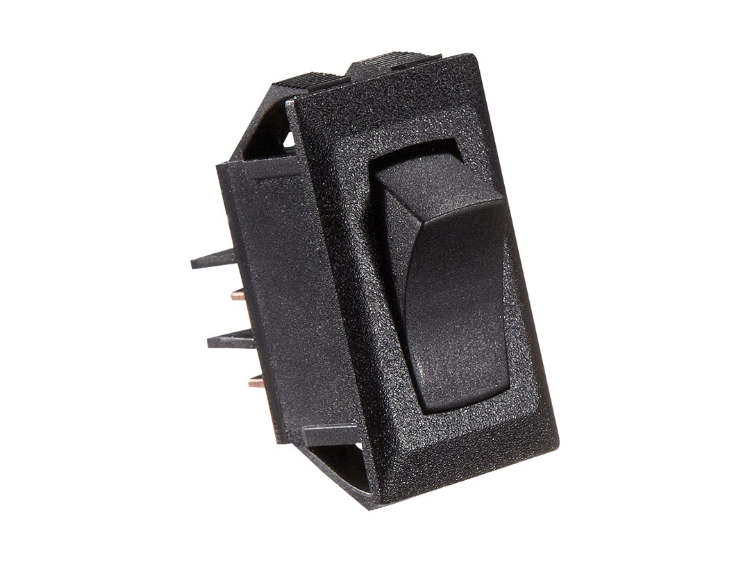 Black Rocker Switch, 10 A, On/Off – SPST – Cut-Out .550″ x 1.125″
