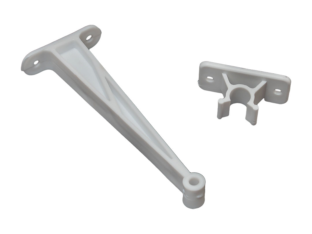 White entry door holder with plastic clip. Measures 5 1/2 inches. Used for holdilng entry door open. Easy to install. Fasteners included. 1 Per Pack.