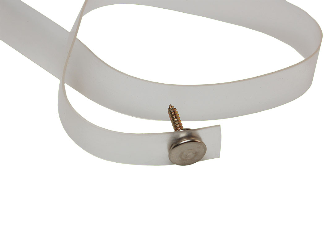 Clear plastic Tieback strap with snap. 18 inches long. May be cut to length for specific use. Typically used to hold back curtain. 1 per pack.
