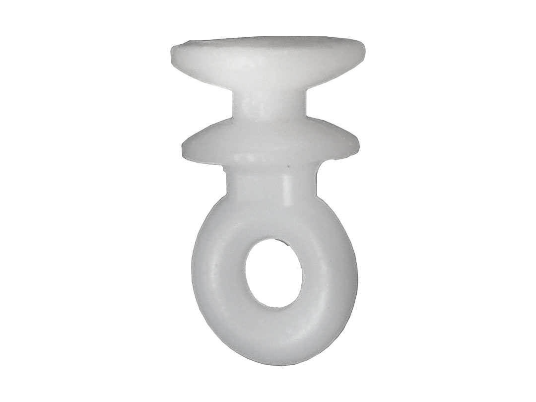 Plastic Curtain carriers. Large sliding eye carrier (#2). Use with Drape Hooks (A113). 14 per pack.