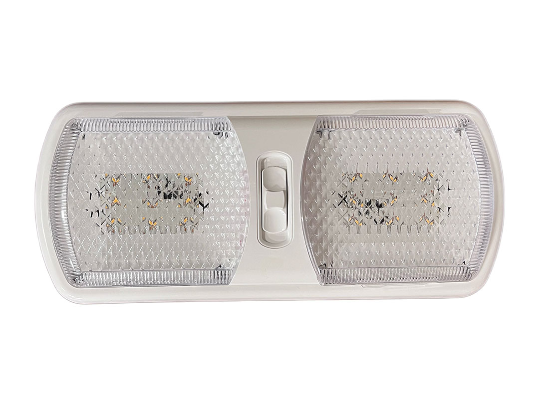 LED 12V Pancake Double light. Dome Double Eurostyle. 5″ x 11.50″ w/ switch, 2 Wire, .38 Amp, White, 1pk